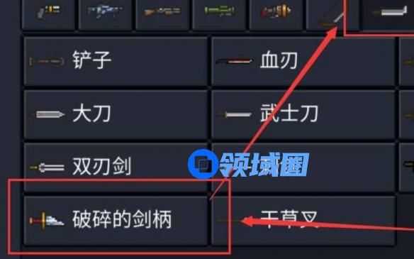4、打开锻造台,点击近战武器类,选择“破碎的剑炳”并制造。