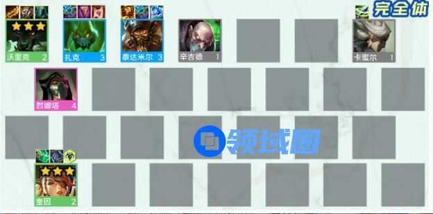 3/5/7/9炼金:沃里克、泰达米尔、扎克、烈娜塔、维克托、辛吉德(炼金低于75%血以下加攻速加减伤加每秒回血)