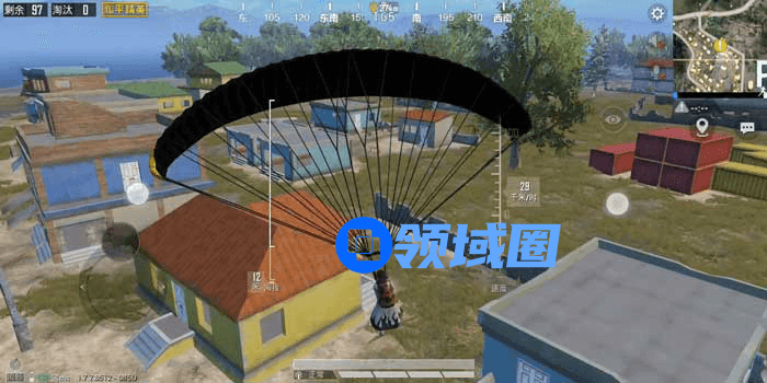 在距离我们的目标点还有800米的时候我们开始跳伞,然后直接垂直下落保证最大的速度,然后操纵方向轮盘,一般都是往左或者往右45°左右的位置,然后斜对着我们的目的地,我们在空中的轨迹就是一个斜的直线,两点之间线段最短,我们用最快的速度和最短的路程,这样的跳伞方法就是目前已知的最快的。