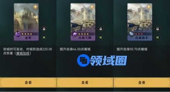 武力、守备和谋略在面对城防耐久的时候,哪怕再高也不会有任何作用,唯一影响耐久拆除速度的只有摧城值,所以我们在对武将选择的时候,需要优先考虑摧城值较高的。