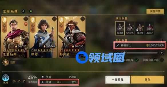 摧城衍生出的攻城效果,我们可以在队伍编辑页面直观的看到,并且只需要给拆迁队配备2500名士兵就能将其最大化,无需配给过多士兵浪费战力。