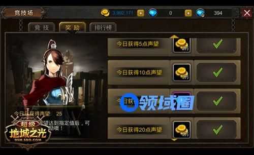 每日开放5场的竞技场可是赚取金币和钻石的好途径,还可获得声望点增加军阶,绝对是每日必做事情之一!