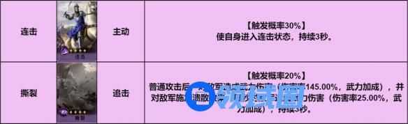 战阵之诗有着非常优秀的治疗率和伤害率,初期五星技能不多的情况下,可装配连击提升战阵之诗的优势,另外一个技能可选择撕裂过渡。