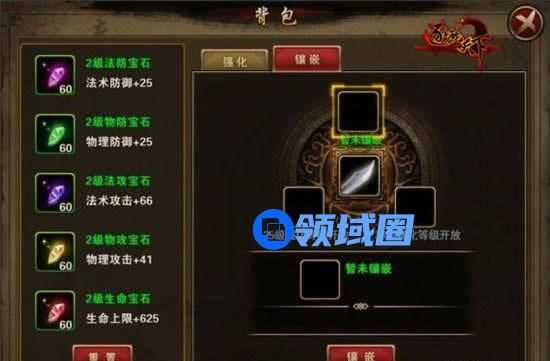 镶嵌宝石:花费少量金钱将拥有的宝石镶嵌入装备中。