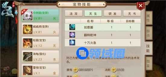 《问道》手游宠物技能界面