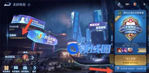 1、首先进入游戏,在游戏主界面点击左下角的全民电竞。