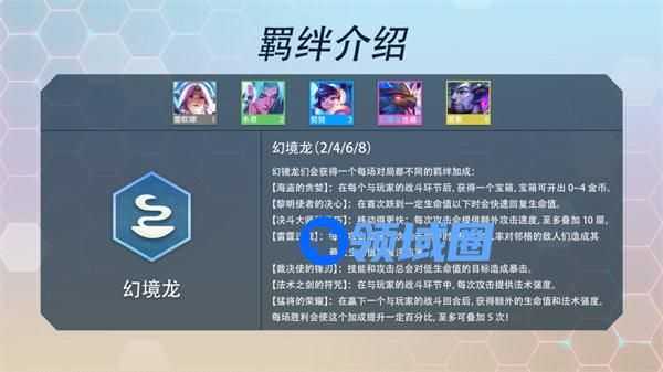 幻境龙类似目前赛季的变异战士,每一局都会有独特的羁绊效果,这些羁绊效果包括:【海盗的贪婪】、【黎明使者的决心】、【决斗大师的灵巧】、【雷霆过载】、【裁决使的锋刃】、【法术之剑的符咒】、【猛将的荣耀】
