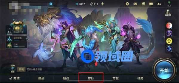 1.先打开英雄联盟手游,点击下方的排行按钮。