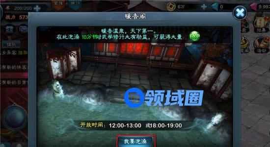 温泉开启后,在收益时间内进入即可获得经验,中途可通过购买道具提升经验加成。