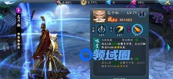 心法-归元吸星:主角攻击暴击,回复18点能量,冷却1秒。选择忘千秋的少侠,主角的装备属性主要选择“暴击等级”,只要保持暴击,在相同时间内,即可比他人丢出更多的出场技,造成恐怖的输出