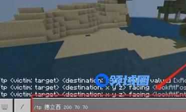 2.然后在刚才打开的对话框里面输入“/tp 名字(对象) 目的地的xyz”,这个是代码。