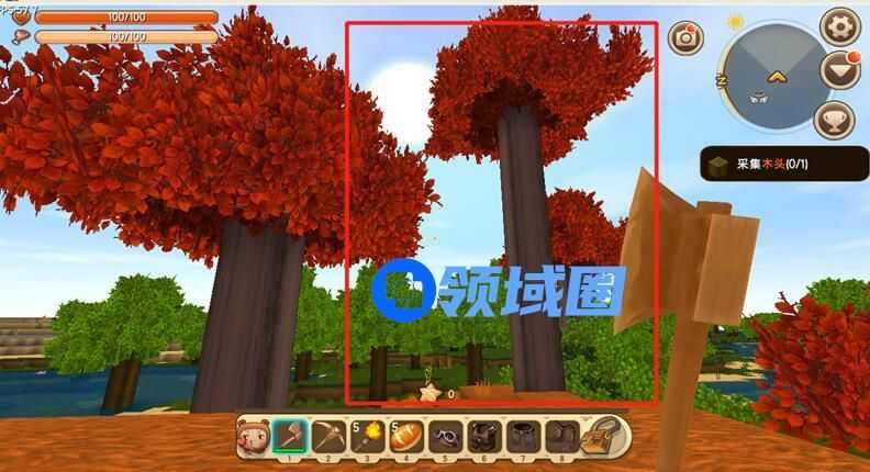 长按砍伐这些树木,都会掉落木块,并且有几率掉落树苗,走近即可收进背包。