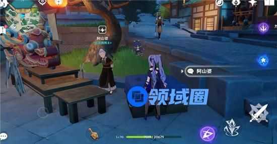 来到璃月右边的传送点,在传送的左前方找到卖玩具的阿山婆。