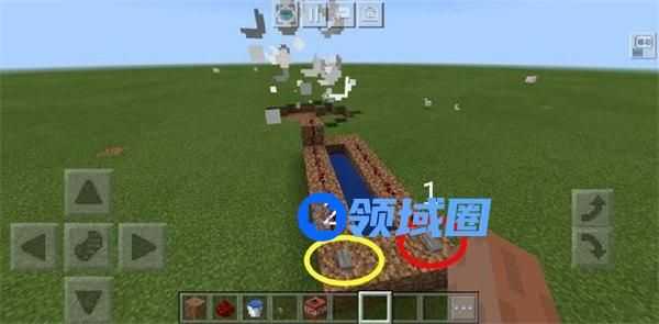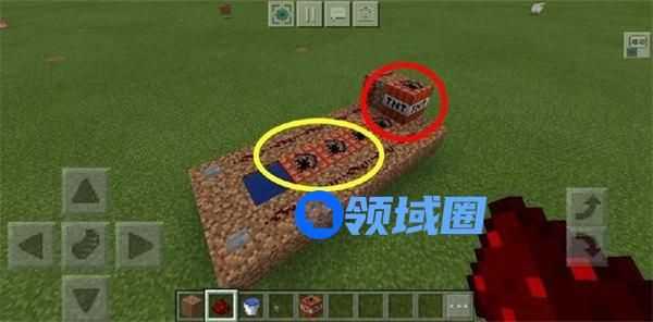 这门炮的具体操作方式也就是,先点击红圈中标示的1号按钮,然后再按下黄圈中标示的2号按钮,炮弹自然就会被发射出去,发射的有多远,就要看你何时按下2号按钮了,熟练操作后,不到30秒就能把这门炮搭建完毕并发射,可以说是最实用也最方便的一种大炮制作手法了,不过可惜就在于射程难以把控,但是学会了可以和萌新秀一波喔