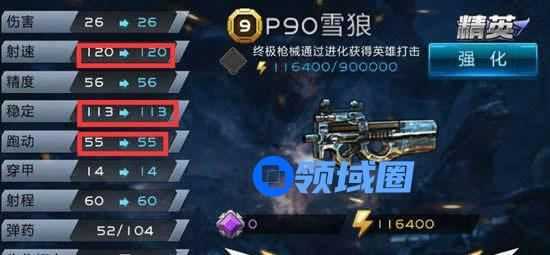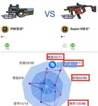 图一:《全民枪战》P90雪狼终极强化与Super-V暗光终极版属性对比图