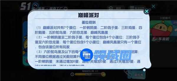 1、巅峰派对一共有着7个段位,每个段位之间都有多个小段位。