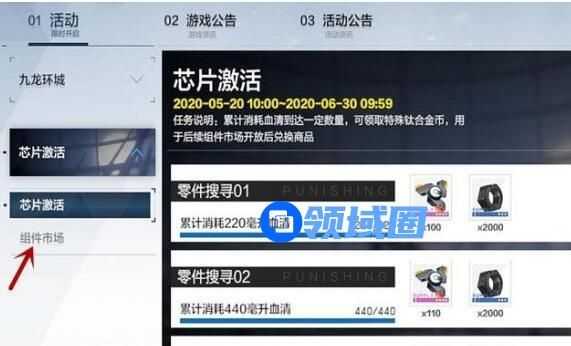 在公告的【芯片激活】中,然后玩家们消耗血清达到一定额度,就可以领取这个钛合金币。