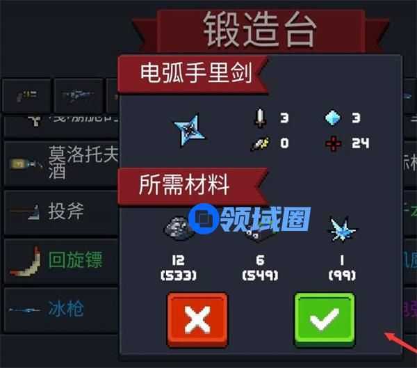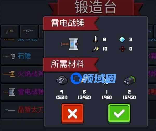 2、两件合成所需的装备都可以在右侧锻造台打造。将角色移动至右侧锻造台,选择指定装备然后点击绿色“确定”按钮即可。
