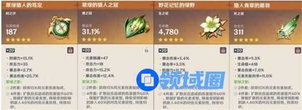 辅助主词条选择:花生命、羽毛攻击、杯子充能/元素精通、表充能/元素精通、帽子暴击/爆伤/元素精通。