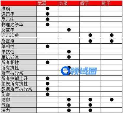 小编做了个装备属性表给大家,分别是普通属性和套装属性,在表格中大家可以很直观的看出各部位装备都具有哪些属性。