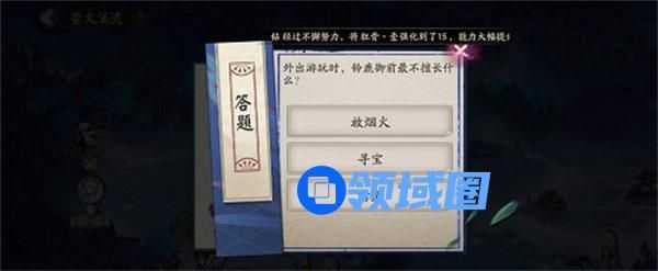 1、答题:外出游玩时铃鹿御前最不擅长什么答案?