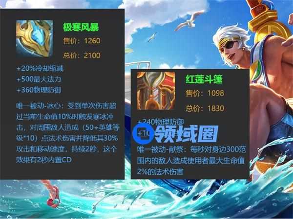 极寒风暴也是双抗流夏侯惇的核心装备之一,极寒风暴提供360点物理防御,500点法力值,20%的冷却缩减,被动还能对敌人造成高达30%的减攻速和减移速效果。极寒风暴除了出色的防御和控制效果之外,最重要的是20%的冷却缩减。夏侯惇是一名极度依赖技能的战士英雄,极寒风暴出来之后,夏侯惇几乎可以做到二技能无限连盾,不管是输出还是抗伤能力,都会有质的提升。
