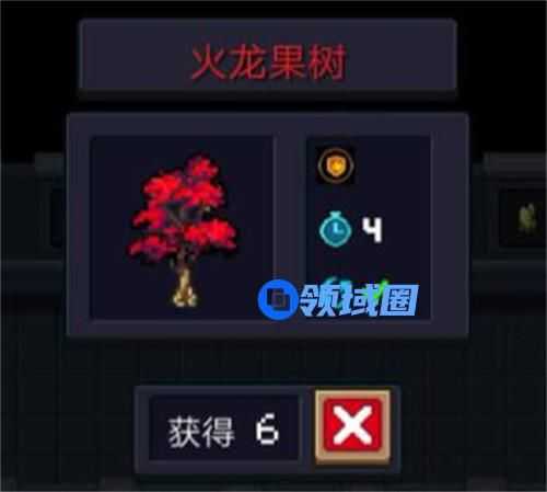 5、火龙果树,成熟四天,可轮回运用,获得天赋火盾(免役火焰并减少爆炸伤害,对敌人火伤提升),BOSS飞龙幼崽掉下。
