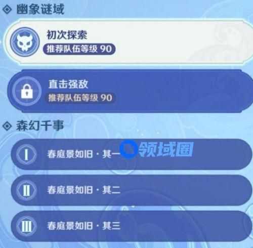 (划重点,重要)挑战界面如下图:分为幽象谜域和森幻千事。