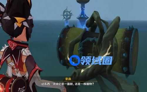 在接任务,交谈完毕后,来到满是像鼓的植物旁,点击交互。