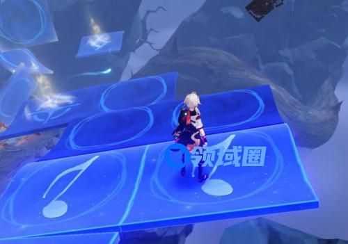 这里的浮岛上会出现音乐踏板,需要踩踏正确才可以触发演奏。第一片按顺序踩踏即可。