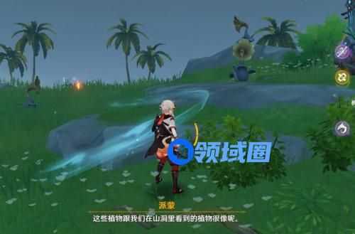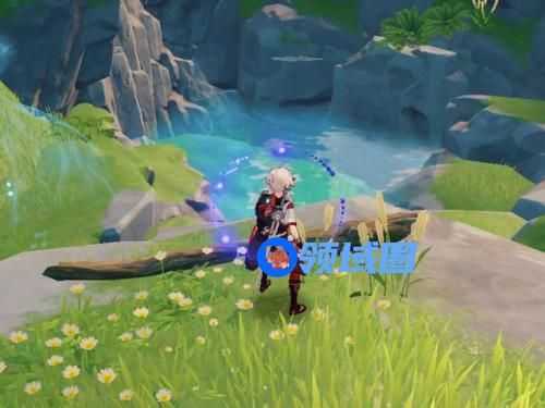 传送回岛上后,开启元素视野,跟随水脉前进。