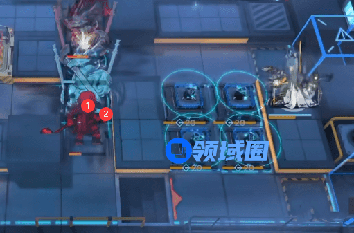 开局部署令(向上)在下图所示位置,然后如图所示位置部署小龙1(向下) → 小龙2(向左),然后开启令技能