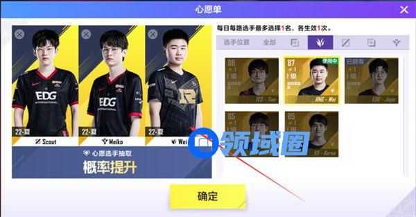 与此同时,三个心愿单相互独立,互不影响。心愿单可选的选手是有限制的。你可以在心愿单中选择LPL赛事中当前赛季所有评分在85-88的SSR,这些SSR选手都会有1到2个招牌英雄。
