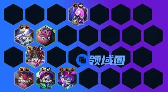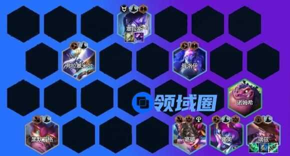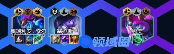 4-5或5-1升8人口,大搜卡找到找到索尔阵容成型,瑞兹装备给予索尔,朔极之矛给予娜美就好。在索尔没来之前可以用娑娜过渡。稳血后升9添加佐伊或巴德(佐伊更优质)找到2星索尔就可大概率前二名。