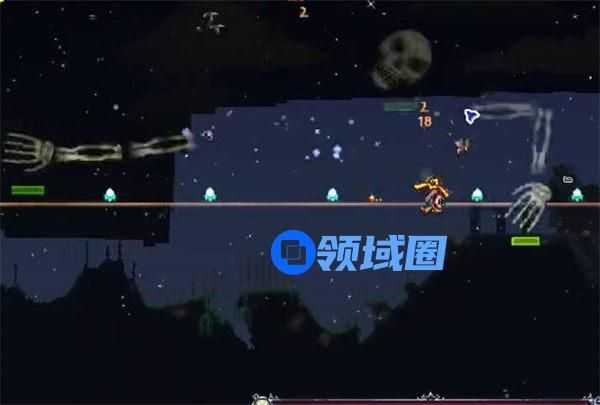 3、大师模式的骷髅王血量非常高,而且不是很容易命中,所以建议大家在晚上到来的时候立刻开打,不然一晚上容易打不完。另外就是在骷髅头转圈的时候,一是要保持距离,防止被黏住直接去世,二是要趁头部防御为0时疯狂输出。骷髅王的手在没被打掉之前会经常挥向玩家。这个时候尽量不要只横向移动,不然会很容易被手擦到,最好向斜方向位移躲避攻击。