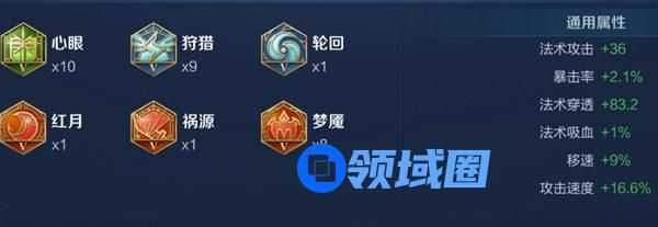 3、铭文搭配:8梦魇+1红月+1祸源、9狩猎+1轮回、10心眼