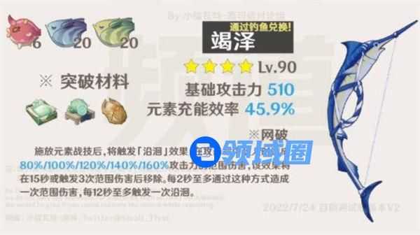 随着3.0版本须弥地区的开放,游戏中也加入了新的钓鱼奖励,而其中的重点就是这把咸鱼弓——竭泽了