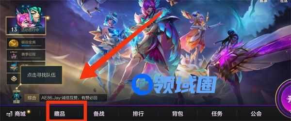 1.打开英雄联盟手游,在游戏首页点击最下面一行中的第二个选项“藏品”,如下图所示: