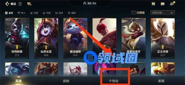 2.进入藏品界面后,点击最下面一行中的第三个选项“个性化”,如下图所示: