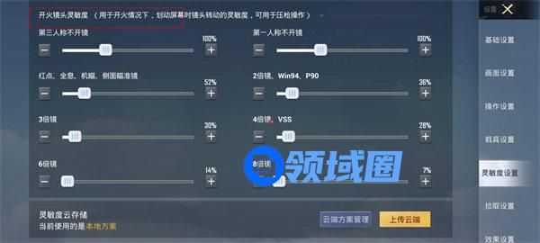 2、开火镜头灵敏度推荐第三人称和第一人称不开镜为100%,红点全息52%,3倍30%,4倍28%,2倍36%,具体如下图: