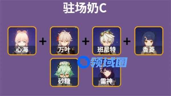 1、原神珊瑚宫心海驻场奶C搭配阵容;心海 万叶或砂糖 班尼特或雷神 香菱。