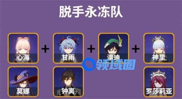 2、原神珊瑚宫心海脱手永冻队阵容搭配;心海 甘雨或钟离 温迪 神里或罗莎莉亚。