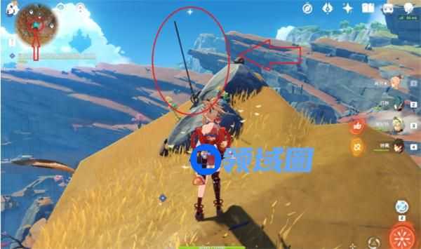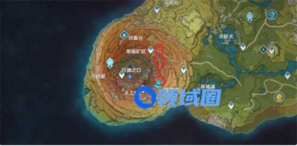 这件供物就在接取任务的地点附近,打开大地图我们可以看到“天工峡”三个字的地名标注,地名的正上方最高处的山崖上,就是同泽之枪的位置了。这个地方很容易攀爬,基本上没有什么难度,我们可以从巨渊之口的传送点出发,也可以从天工峡的传送点出发,就看你自己觉得哪里近了,路上的共鸣岩记得解下谜,有宝箱拿哦~