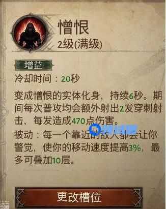 2、憎恨:核心技能,被动提高移速,开启BUFF后走A输出极高;