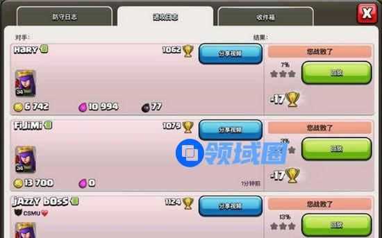 以上是领域圈小编为您整理提供的游戏攻略,希望这个攻略对您有所帮助,请时常关注领域圈《部落冲突》专区,领域圈将为您提供最新的攻略。