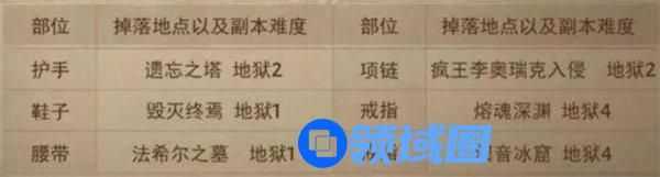 套装掉落地点(概率掉落并非必出)