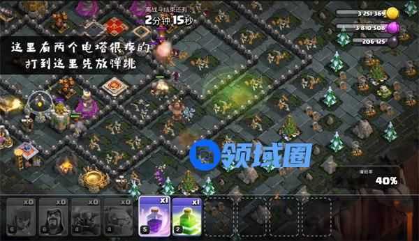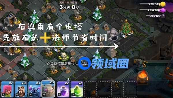1、右上方有个电塔,我们可以先放置石头和法师来节省更多的时间。