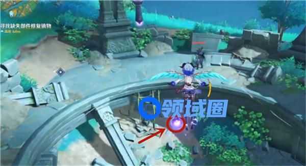 破除水罩之后,直接滑翔下去,中间那个紫色的光点就是镇物之- [ 磐柱镶珠],拾取即可。