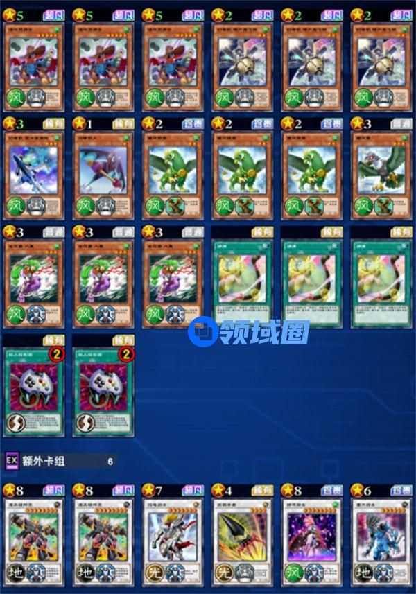 「熏风狮鹫」,我们疾风姐妹花的老朋友了,被「速攻同调士」扔了,卡组特招三星「熏风鹫」,这样就可以6配6且不占通招,稳定性进一步提升。