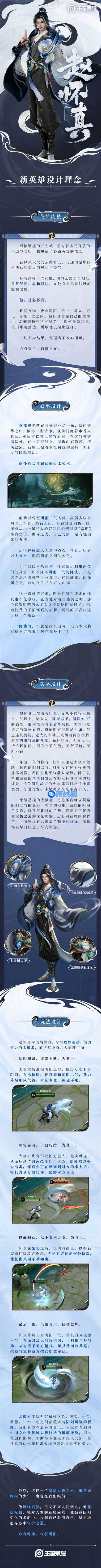 循本心,得自在。他是王者新英雄赵怀真,一位温和淡定的修行之人——他豁达乐观,虽自幼罹患恶疾,却相信世界之大终有治愈之法。为解体内阴阳二气紊乱的病症,他踏上修行,研习太极术。同时,他也是一位烟火气十足的翩翩少年——作为云缨的青梅竹马,每当“意外”发生,平和可靠的他总是会默默收拾“烂摊子”。而私下里,性格截然相反的两人争吵拌嘴,也是常有之事。在怀真心中,做事不为结果,遵循当下本心即可。纵使世事阴阳多变,他定会坚守内心自在。他是赵怀真,护一人,也护长安。心有乾坤,气驭阴阳。